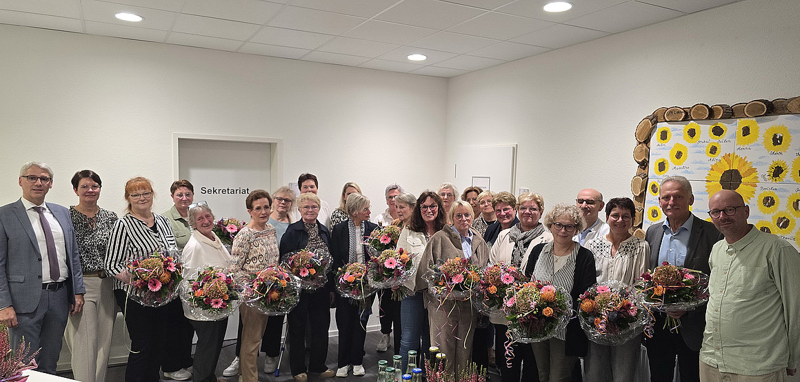 Ihr 25- jähriges Jubiläum feiern Katja Menke und Sabine Schlömer, ihr 40- jähriges Jubiläum begehen Doris Brüning, Ute Budde, Maria Janssen, Iris Landwehr, Monika Lichtenstein, Gabriele Middendorf, Anne-Josefine Uphaus und Martina kl. Bornhorst, ein seltenes 50-jähriges Jubiläum gibt es bei Rita Hartmann und Mechtild Zilm.